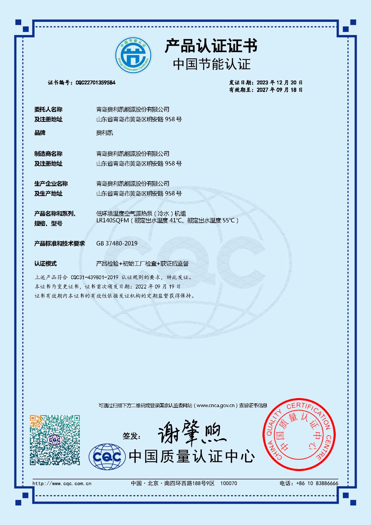 產(chǎn)品節(jié)能認(rèn)證證書